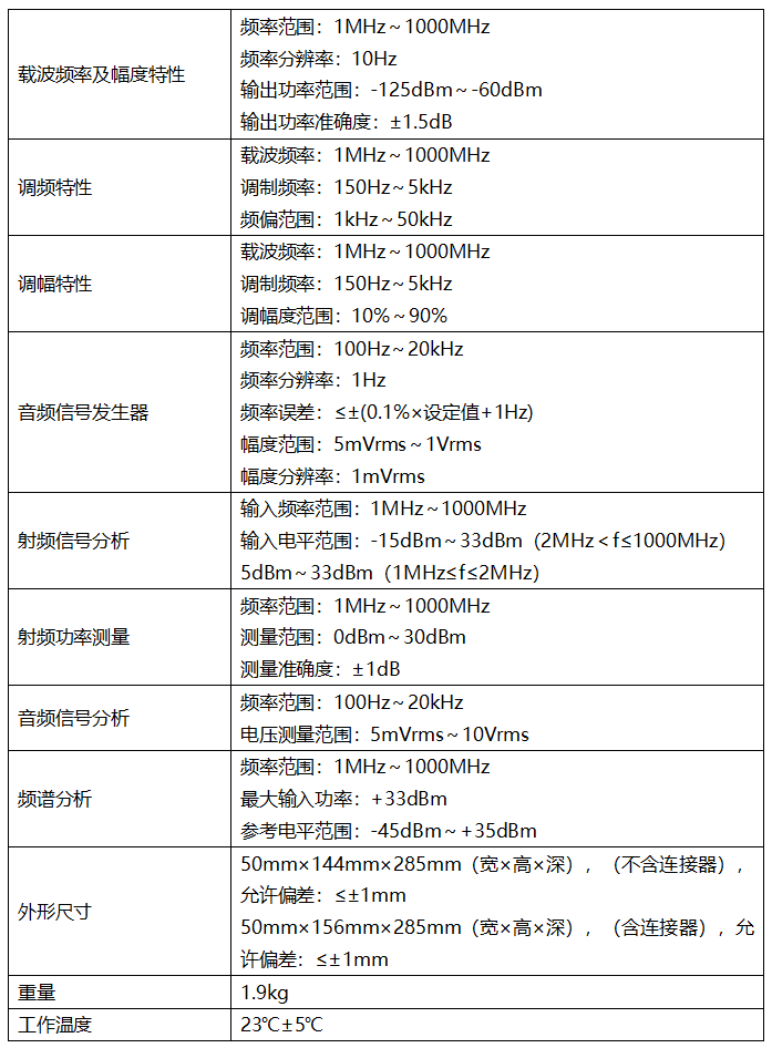 无线电综合测试模块属于电子测量仪器中的测量仪器,频率范围为1MHz~1000MHz,能对输出功率在2W以内的无线通信装备进行接收、发射测试,从时域和频域上进行测试分析,满足调频调制、调幅调制等无线电设备的多种参数进行测试的需求。仪器内置射频合成源、射频频谱分析仪、射频功率计、射频频差计、射频调制度仪、音频合成源、音频电压表、音频频率计、信纳计、失真仪等多种测试仪器功能,具有频段覆盖宽、综合性强、性价比高等特点。