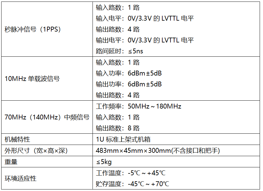 QF8131B有源功分网络能够将1路输入信号功分为4路相同的信号输出。本设备具有以下功能:支持秒脉冲信号(1PPS)1路输入,4路输出;支持10MHz频标信号1路输入,4路输出;支持70MHz(140MHz)中频信号1路输入,8路输出。